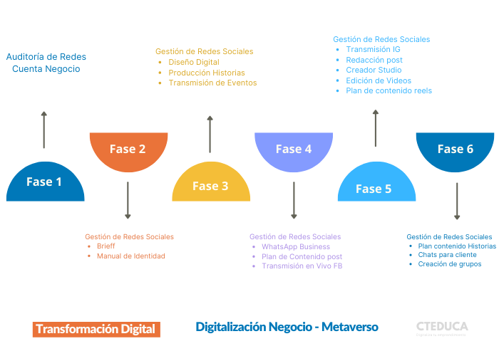 Durante estas etapas los talleres serán acompañados por asesorías y comenzarás a implementar el plan de contenido de tu negocio.